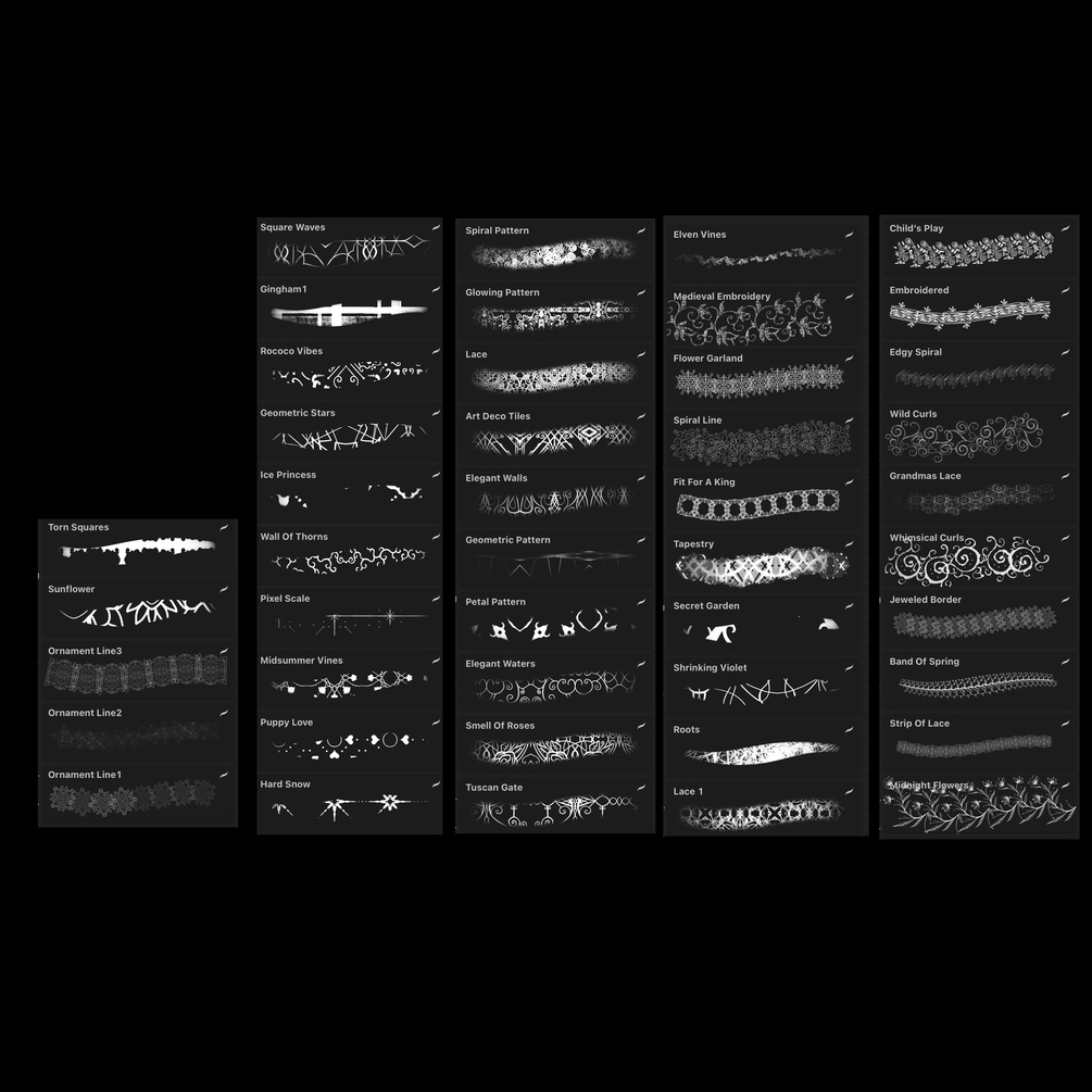 use the to create intricate backdrops and card designs or use them to decorate fabrics and add awesome details to your drawings.