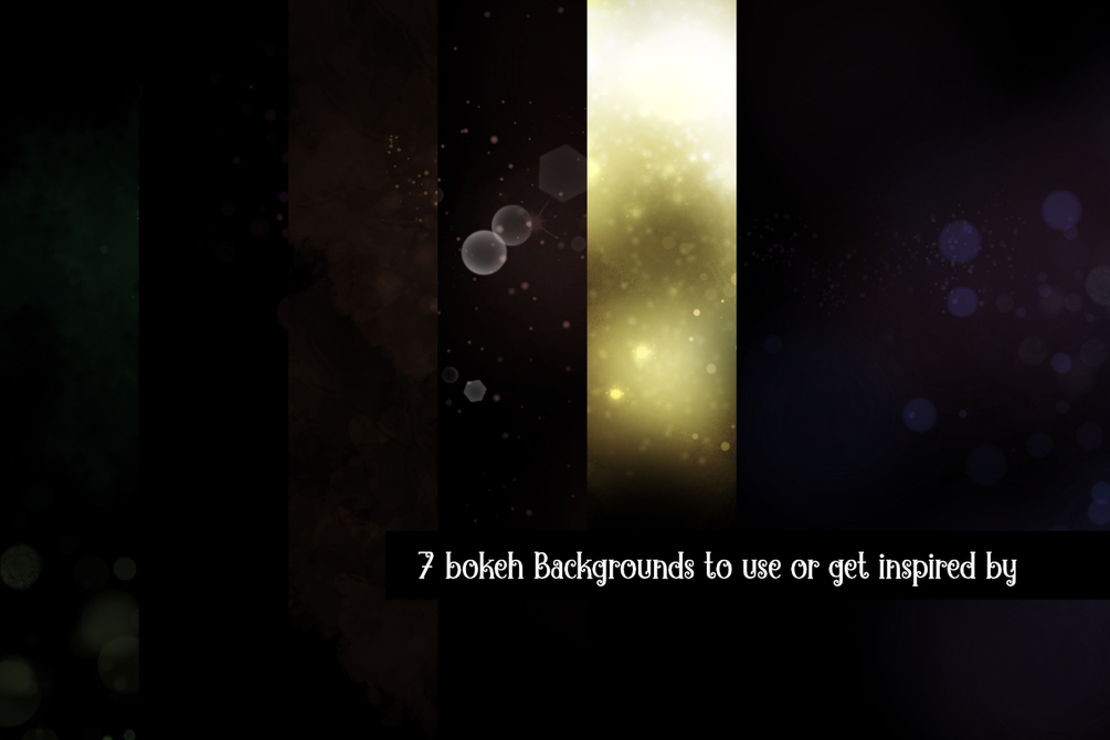 7 Bokeh backgrounds are also included. You can use these in your designs by adding them on a new layer over your artwork and setting the layer mode to add or /screen. Feel free to change the example graphics to suit your needs.