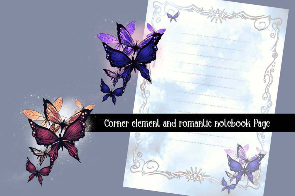 You also get a few premade assets: 4 tilable patterns, I pretty lined notebook/stationary design and 2 Butterfly elements.